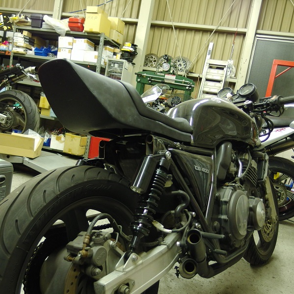 当店で扱うカフェレーサー外装のシングルシートカウルECR13を取り付け。