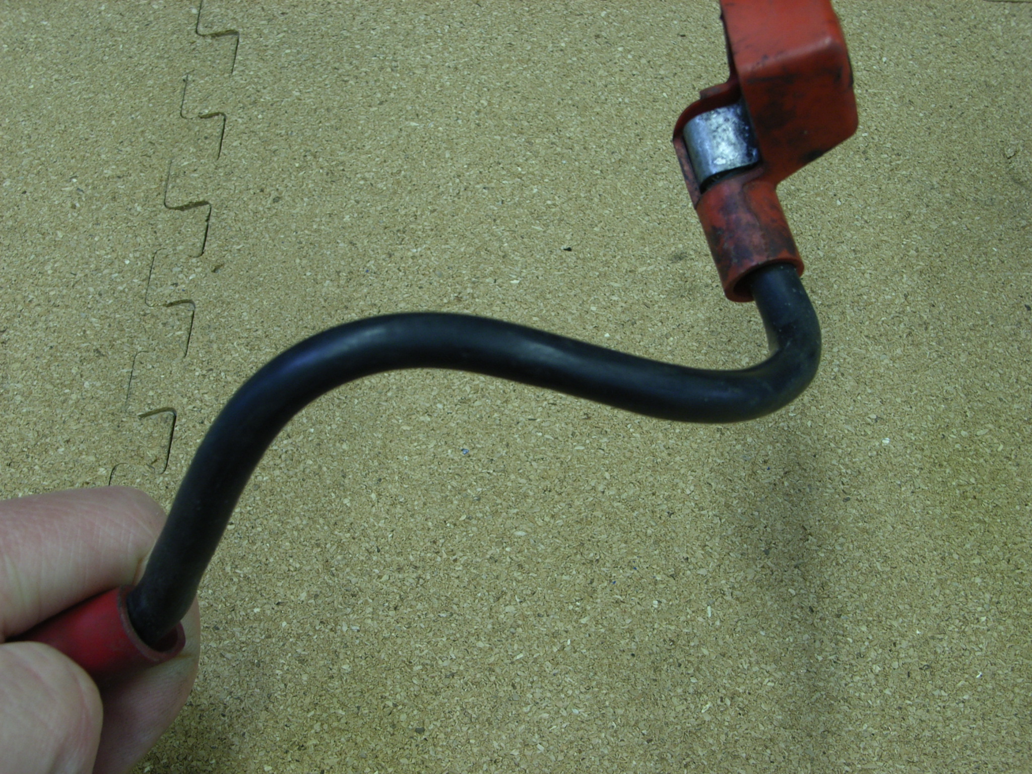 長年使ったバッテリーケーブル。カッチッカッチに固まっていませんか?固くなってくると被覆が割れて銅線がむき出しになり、ショートの原因になりますし、年数が経てば中の銅線も劣化してきて抵抗が増え、電気が綺麗に流れなくなってきます。