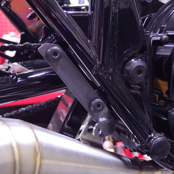 マフラーステーを取り出せるのがバックステップを固定しているネジ穴位しかなく、ちょっと不格好な気がしますが、この上にはバックステップが付くので、まあ目立たなくなるかな?とゆう感じです。