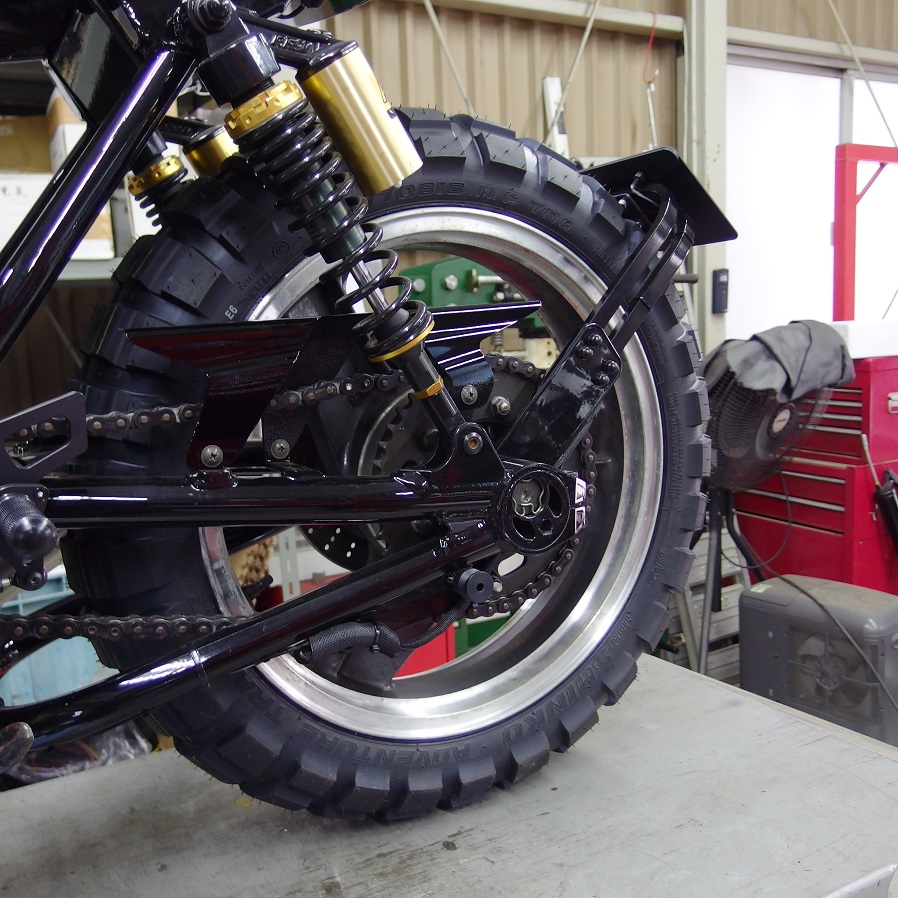 スクランブラー名乗ってるのにこのタイヤのままな訳もなく、例に倣って余計なものはブッタギル!
