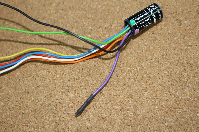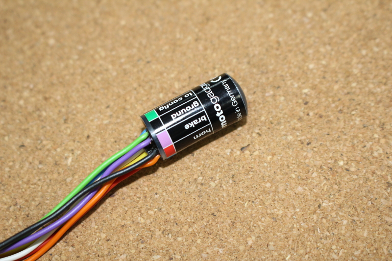 紫線はフロントブレーキスイッチに接続するのですが、今回は車体のノーマルの配線を使いmユニットと連結しますので、チョッキンします。