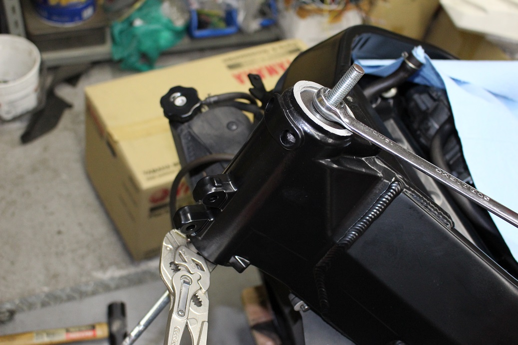 ステムのナットを締めてステアリングの作動具合を調整しますが、車種や使用されているベアリングによって調整方法は様々で、CBR954RR(前期)の場合は
