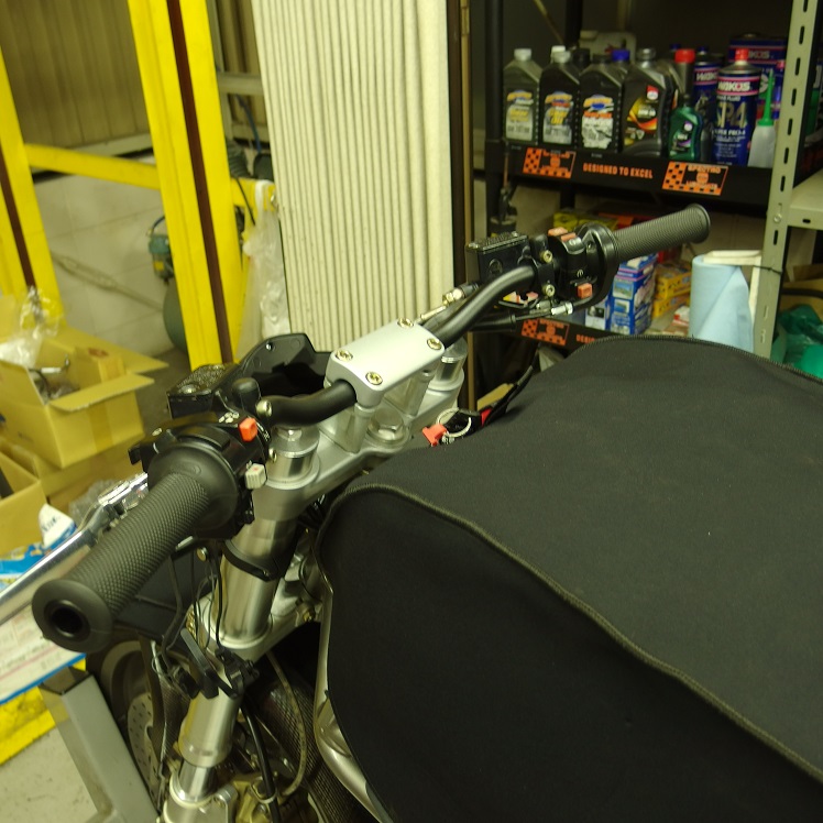 前回ヘッドライトを取り付けた時点で、『メーターはノーマル?モトガジェット?それともアシュラにしますか?』とゆう事でお客様に一度足を運んでもらった際、ハンドルもアップハンが目立ってしまいカッコ悪いとゆう事で、追加でご依頼いただきました。ありがとうございます!