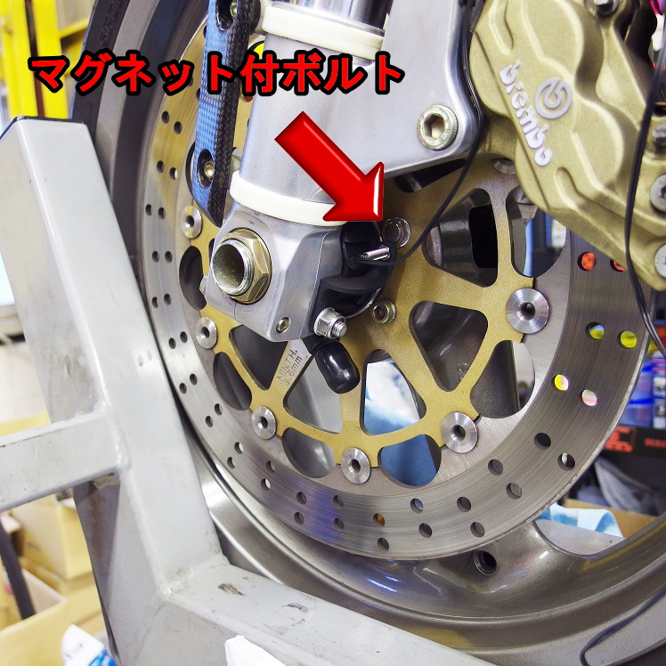 通常はブレーキディスクやスプロケットに付属のマグネットを埋め込むのですが、それが難しい場合はオプションのマグネット付ボルトを使いセンサーポイントを作ります。