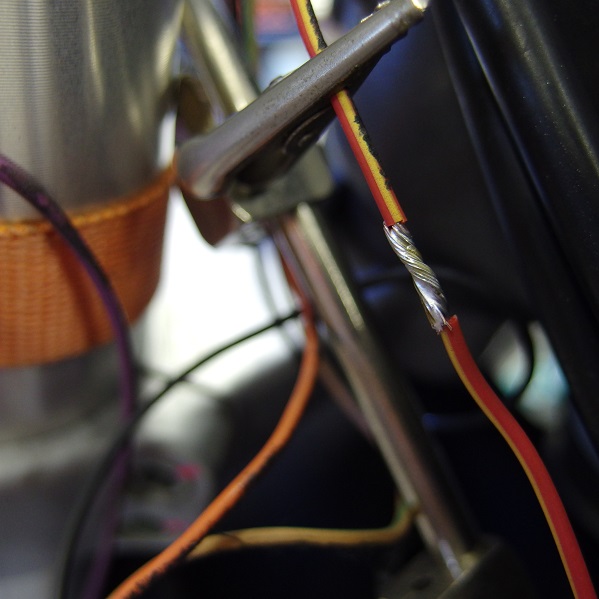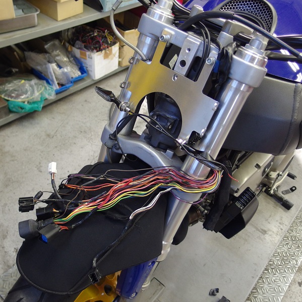 ヘッドライト付近に必要な配線と、そうでない配線とを1本ずつ選別しております。