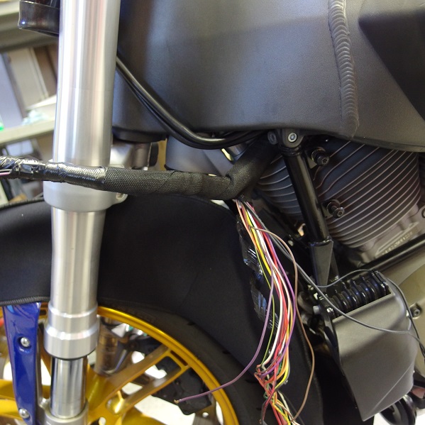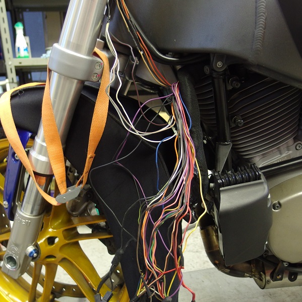 フレームやタンクの隠れた場所にスペースがあれば、配線の取り回しを変えて収めるのですが、このXB12Sは全然空きスペースが無く、メーカーもよくこんな気密に作ったなと感心する次第です。