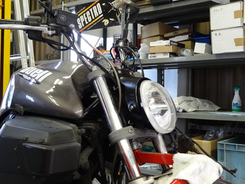 オーバルヘッドライト限定になりますが、ヘッドライトを上から吊り下げて取り付けします!!