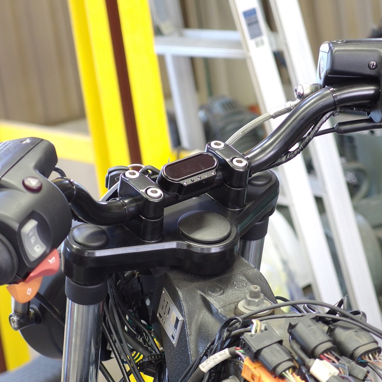 まだトップブリッジの色がシルバーですが、後々全体的に黒くしていきたいとの事ですので、トップブリッジが黒くなった時、更にメーターと車体の一体感は大きくなりますね!!