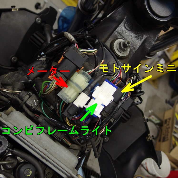 メンテナンスしやすいようにモトスコープミニ、コンビフレームライト、モトサインミニをそれぞれ独立させたコネクターを使います!