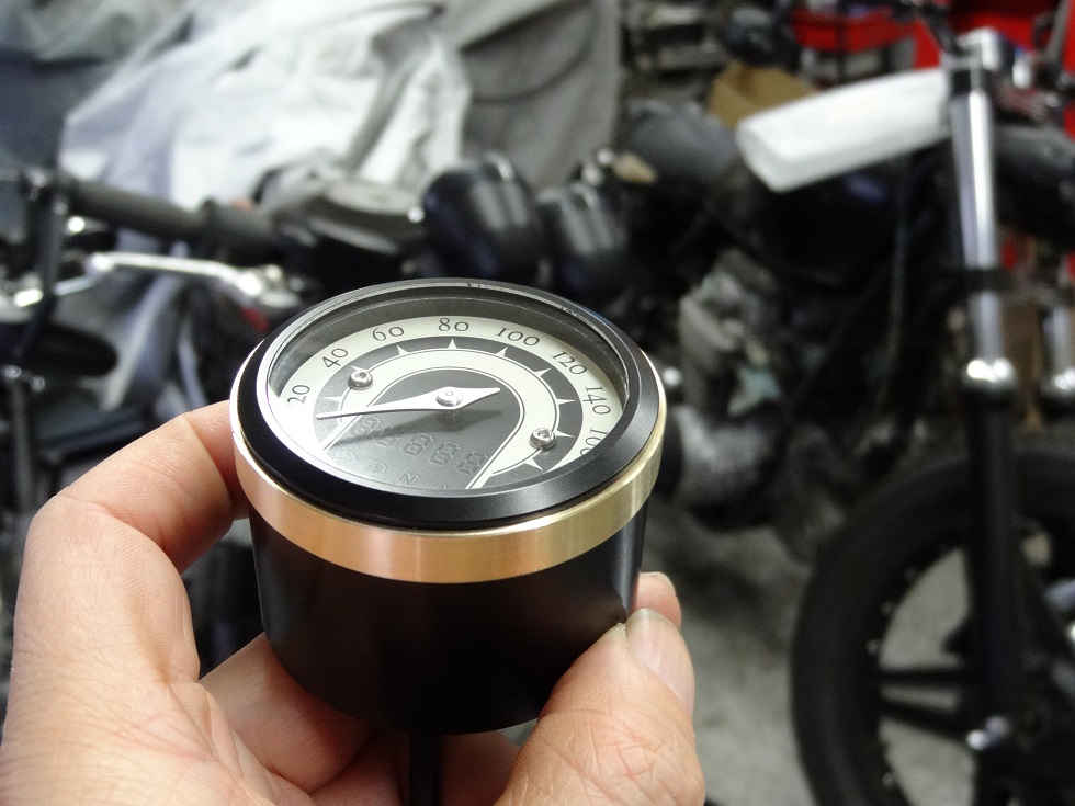 お客様のご要望で『真鍮のプレートを使ってその上に取り付け』とのご依頼で「使うか分かりませんけども」と一応ご持参の真鍮プレートをお預かりしたものの、真鍮のプレートにただメーターを乗っけても、黒いプレートの方がかっこいいんじゃないのかなと思いまして・・・・しかし真鍮も使いたいので・・・考えました・・・