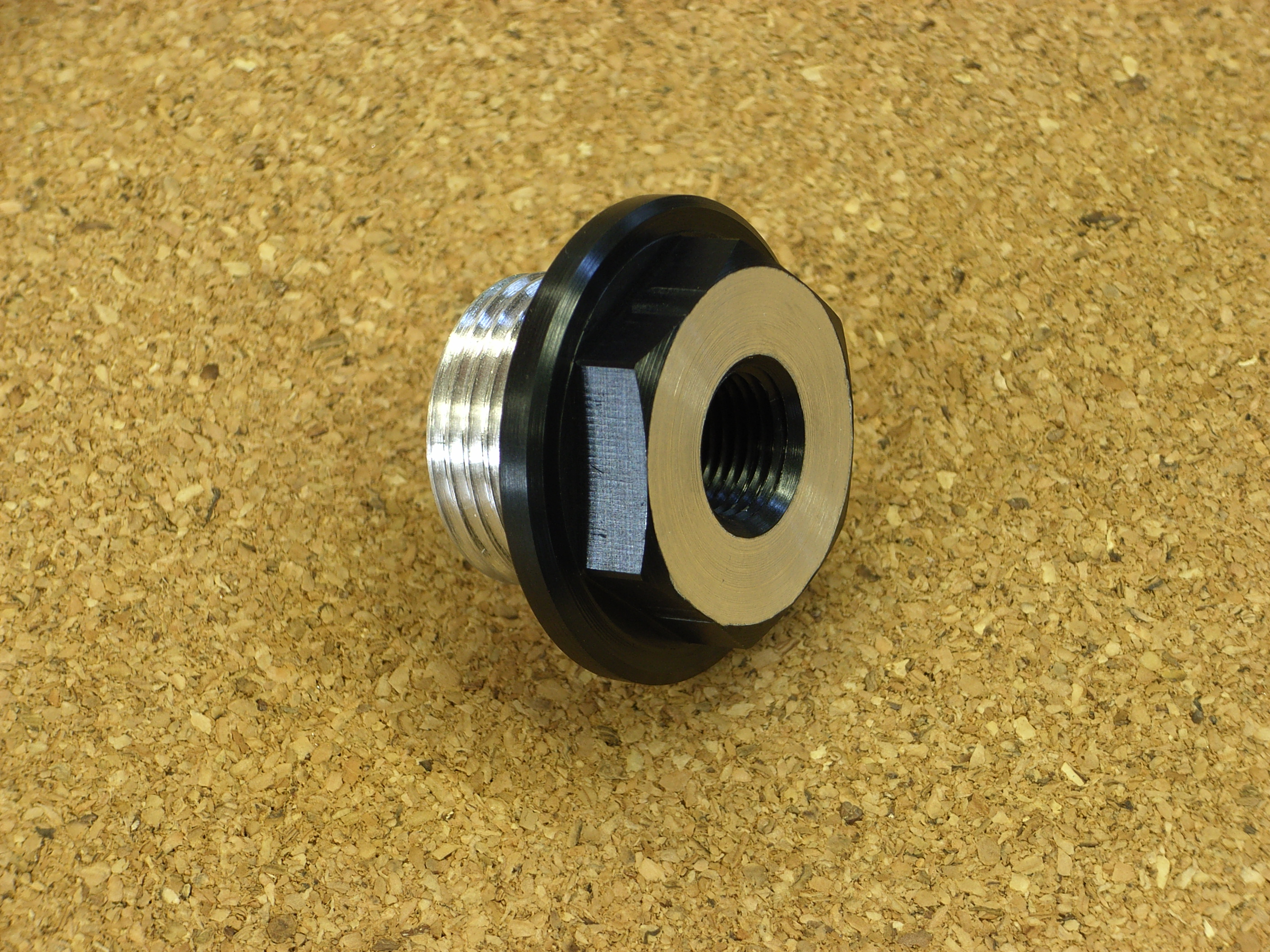 油温センサーも取り付け出来そうな場所がありましたので、追加です!こちらのセンサーアダプターはスペースの関係で市販品が使えなかったのでワンオフです。黒い部分はアルマイト処理、シルバーの部分は無処理。
