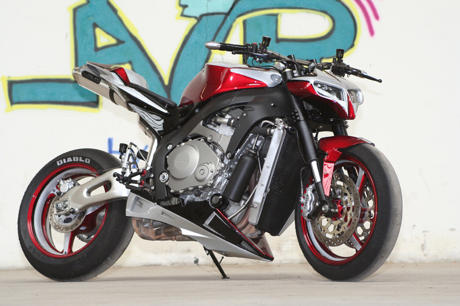 間違っても幅700mm以下、背筋ピーンと垂直になるキョンシーハンドルは付けない様に注意して頂きたい!ユーロ系ストリートファイターへの道のりは遠のいてしまうでしょう(笑)