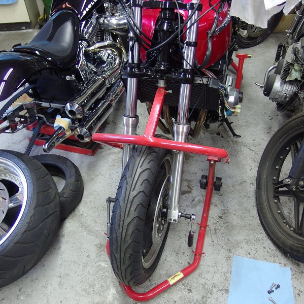 フロント回りの分解できる場所とバイクスタンドが空いたので、このチャンスを逃さずパパッっと進めましょう!!
