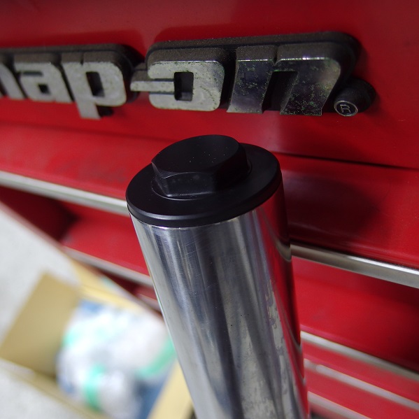 外れているついでに、先日も使った黒染めスプレーでフォークキャップを黒く塗ってみました!
