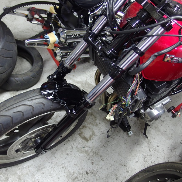 フロントフェンダーも塗装し、全体が黒光りしていい感じ!!!