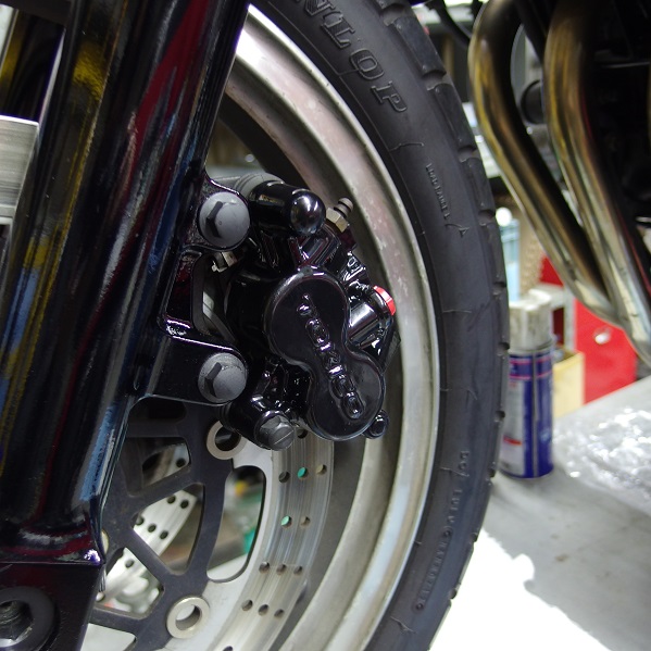 ついでにキャリパーも塗りまして、黒光り度がUPしまして