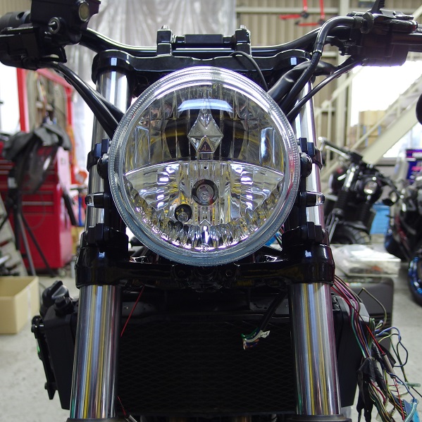 オーバルヘッドライト08は前に飛び出させず、なるべく車体側に寄せて付けるのがカッコいいです!