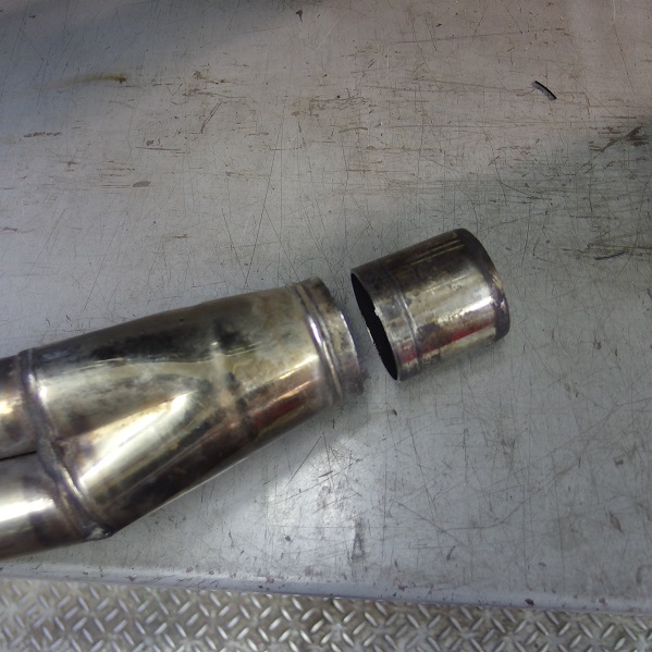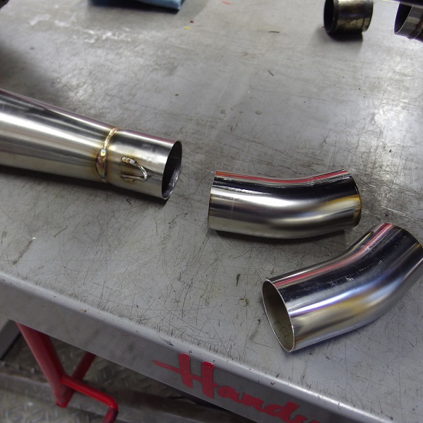 エキパイとサイレンサーの接合部は溶接で永久固定でもいいのだけど、脱着できる方が何かと便利かなと思うので、分割式にします。