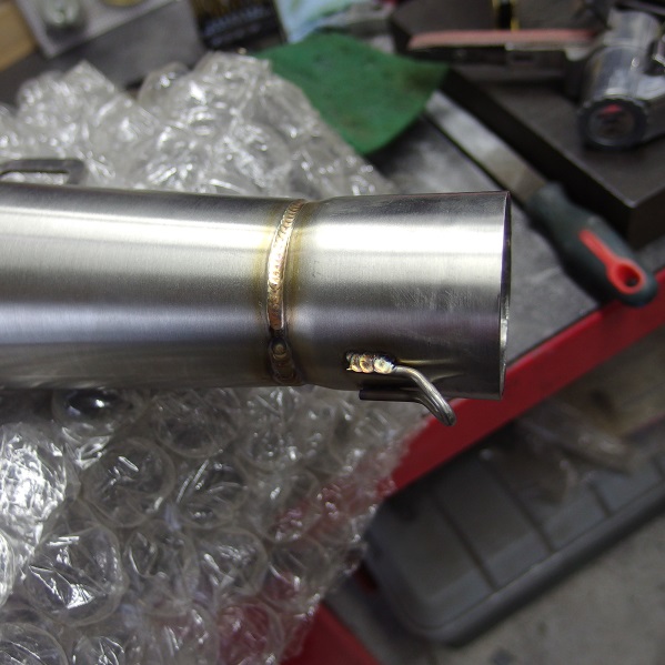 エキパイ側にもスプリングフックを溶接して、無事連結できました!