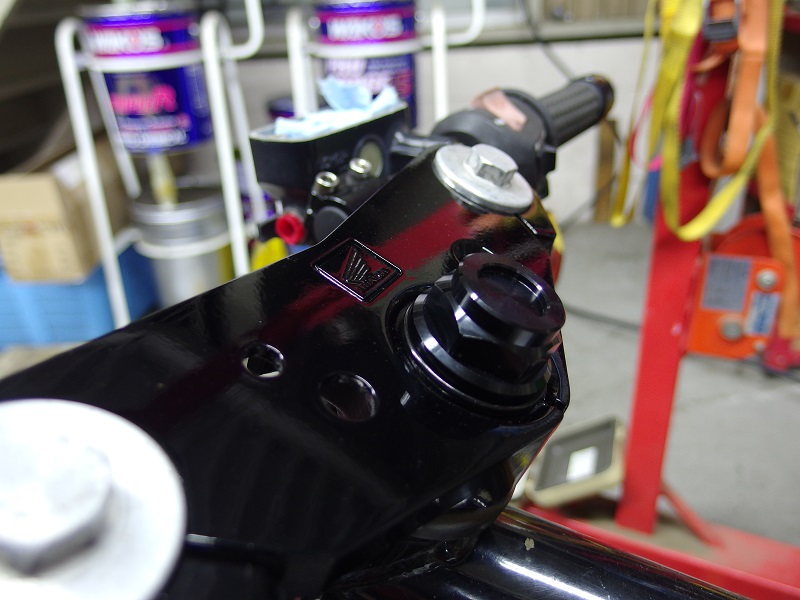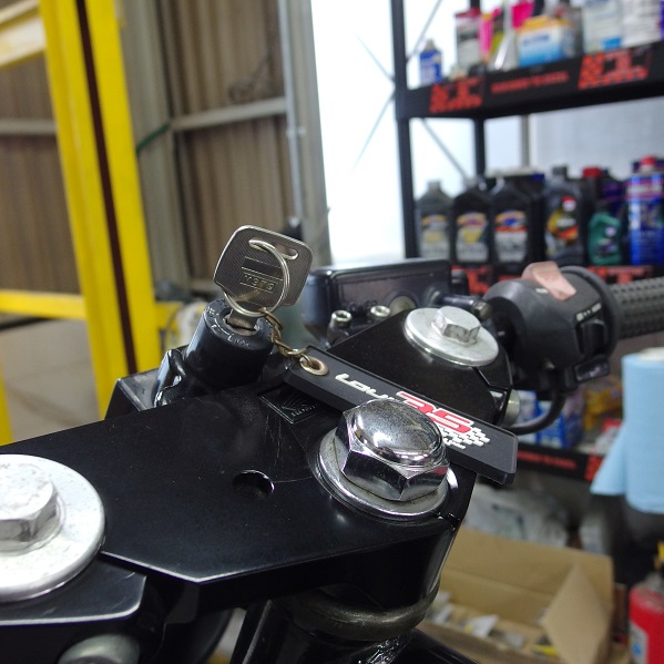トップブリッジ付近に付けたいところですが、イグニッションキーホルダーがあって上手く付けられないので・・・