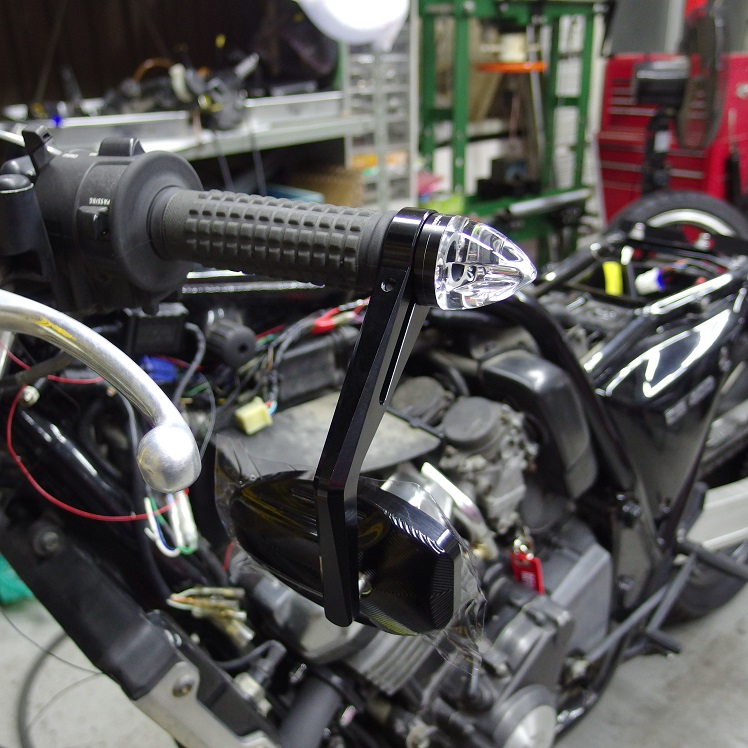 今まではフェラーラバーエンドミラー + BL2000LEDバーエンドウインカーの組み合わせでしたが、今回はフェラーラミルドバーエンドミラー + motogadget m-ブレイズコーンの組み合わせでいきます!!