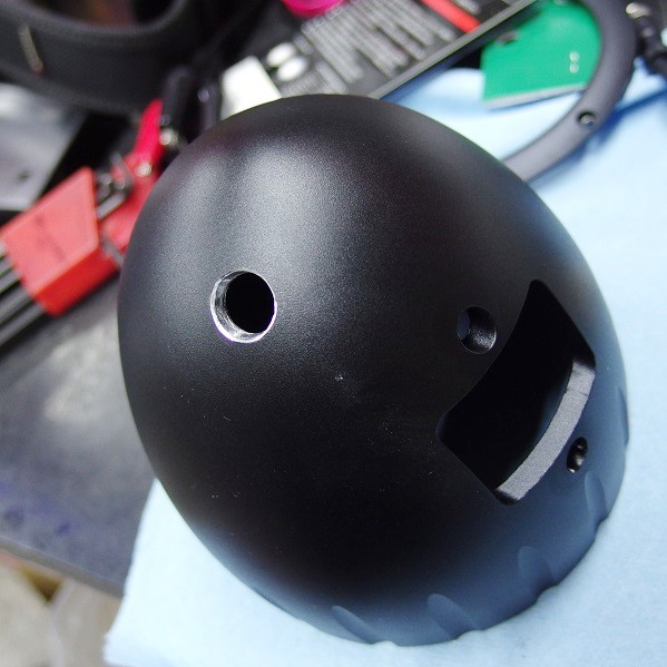 しかし、LEDヘッドライトバルブのコネクターの位置が悪く、ヘッドライトケース背面に配線用の穴を設けました。