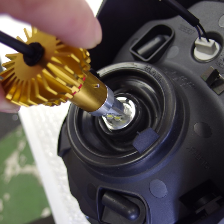 LEDヘッドライトバルブをシュッと入れてクイッと回し・・・
