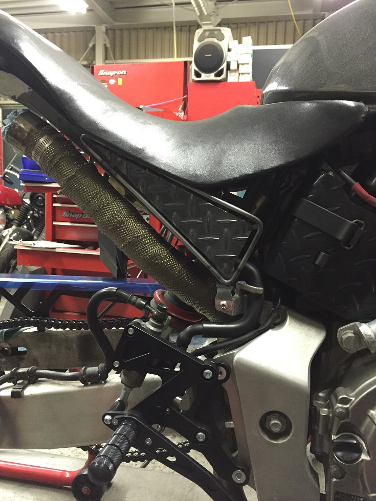 同じくサイドカバーが無くなりシート下のパーツが丸見えになっており、このままですとワイルド過ぎるのでサイドカバー的な物を作りましょう!