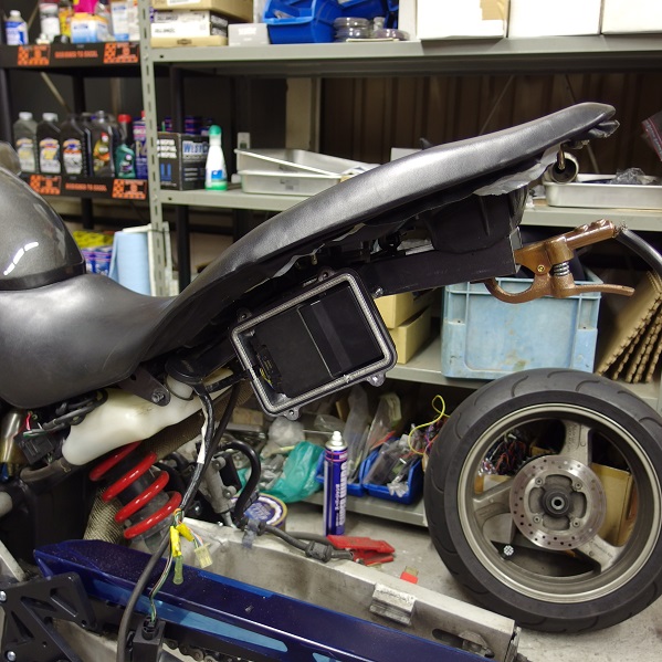 テールカウルと共にサイドカバーも外した為、バッテリーがむき出しになってしまいましたが・・・