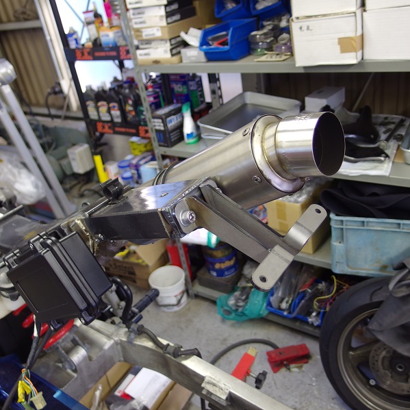 それに、マフラーをこの位置にする事でシート下のフレームを隠すとゆう効果も狙っています!