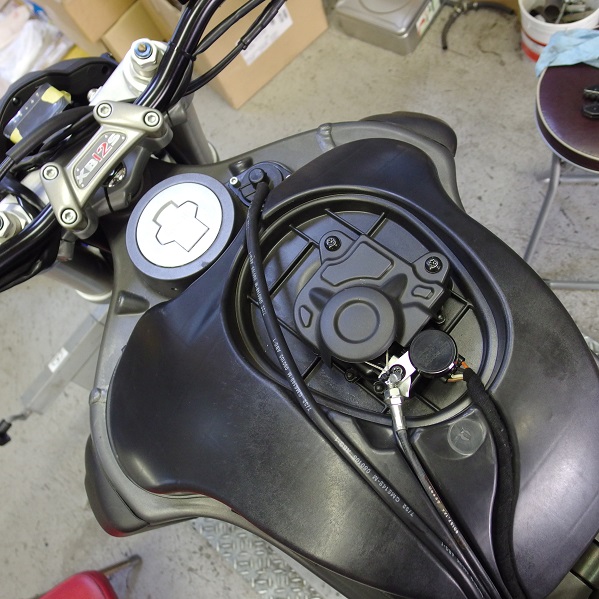 まだトップブリッジの色がシルバーですが、後々全体的に黒くしていきたいとの事ですので、トップブリッジが黒くなった時、更にメーターと車体の一体感は大きくなりますね!!