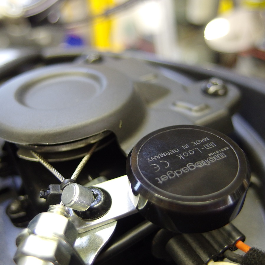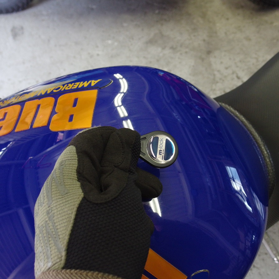 ビューエルXB12Sのイグニッションキーは元々ヘッドライトユニットについていますので、今回のヘッドライト、メーターのカスタムにより、移設なりコンパクトな物にする必要がありました。そして、せっかくの機会とゆう事でモトガジェット製のm-ロックを取り付けさせていただくことになりました。
