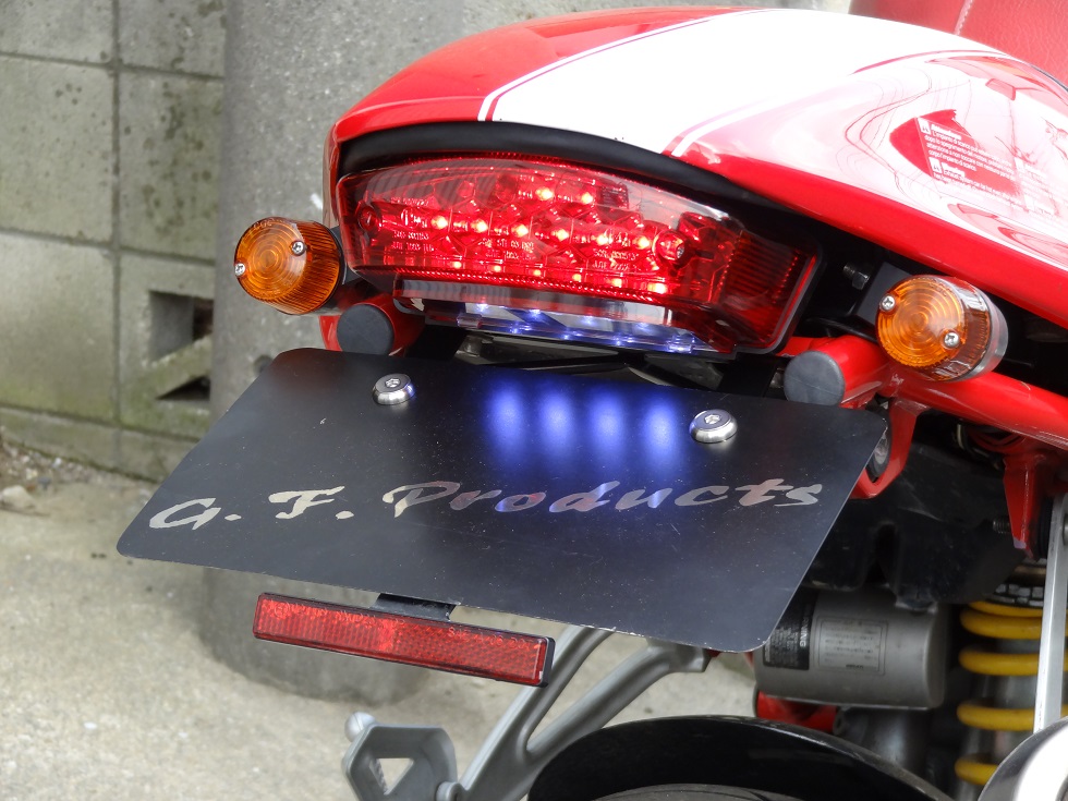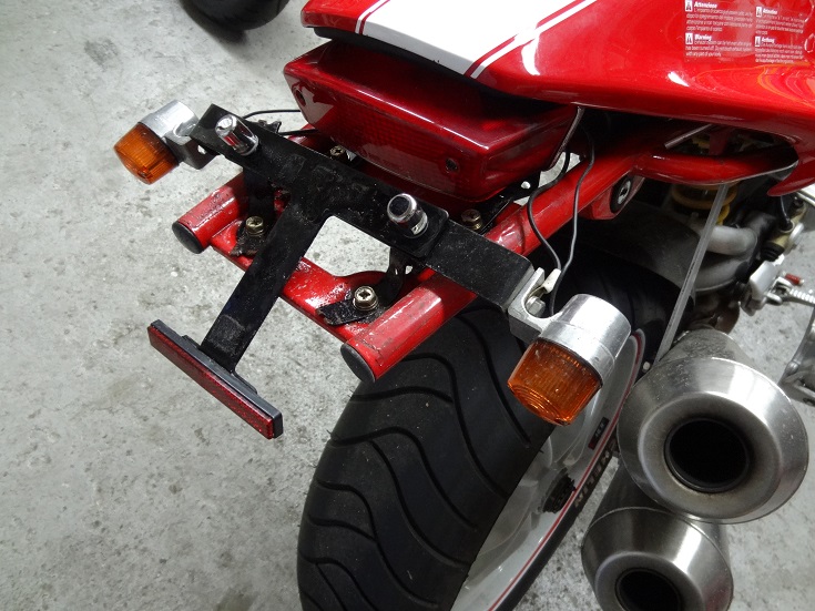 ホームセンター等で売っている穴の沢山空いたステーを駆使しご自身でフェンダーレス化したドゥカティS4R。