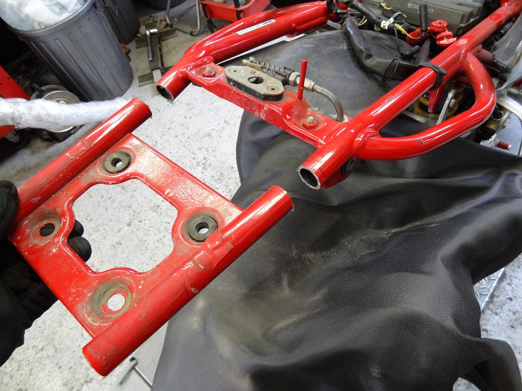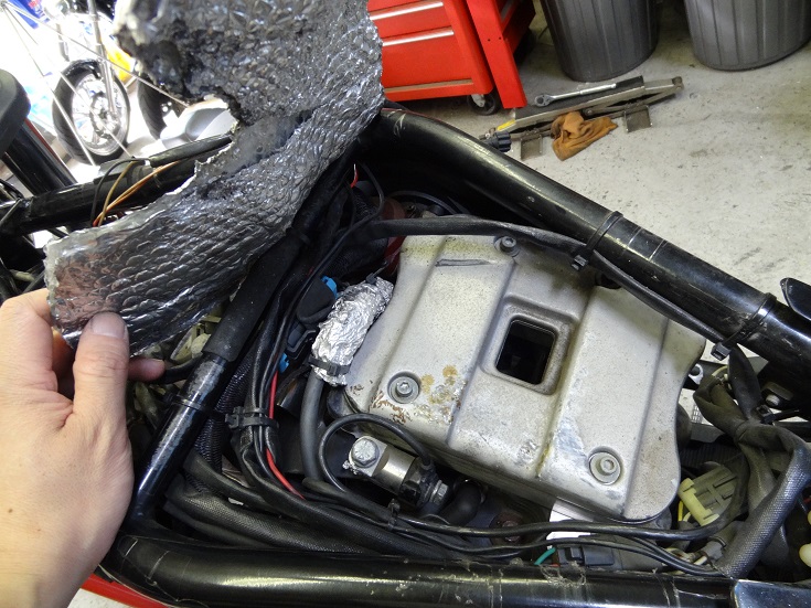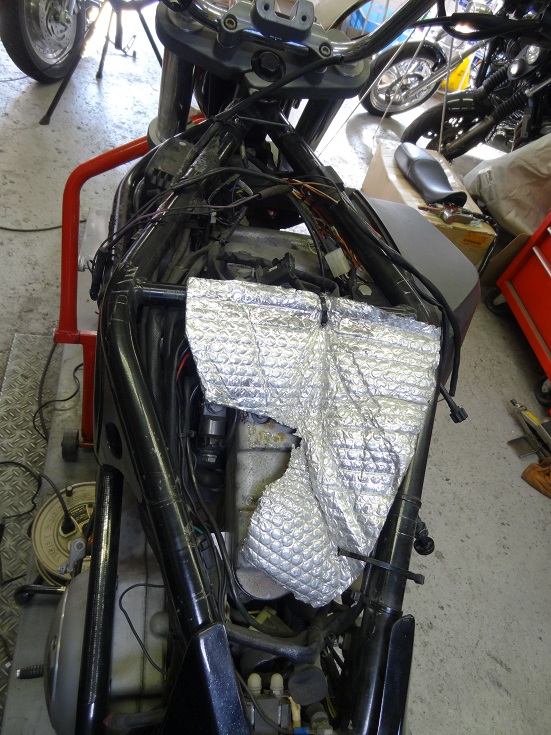 タンクを外したところ・・・・タンクへのエンジン熱を遮断する為の工夫でしょうかね。