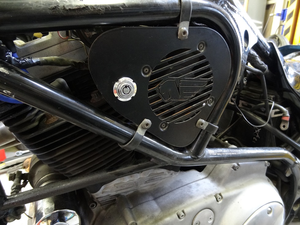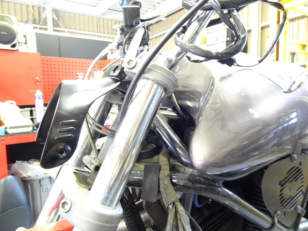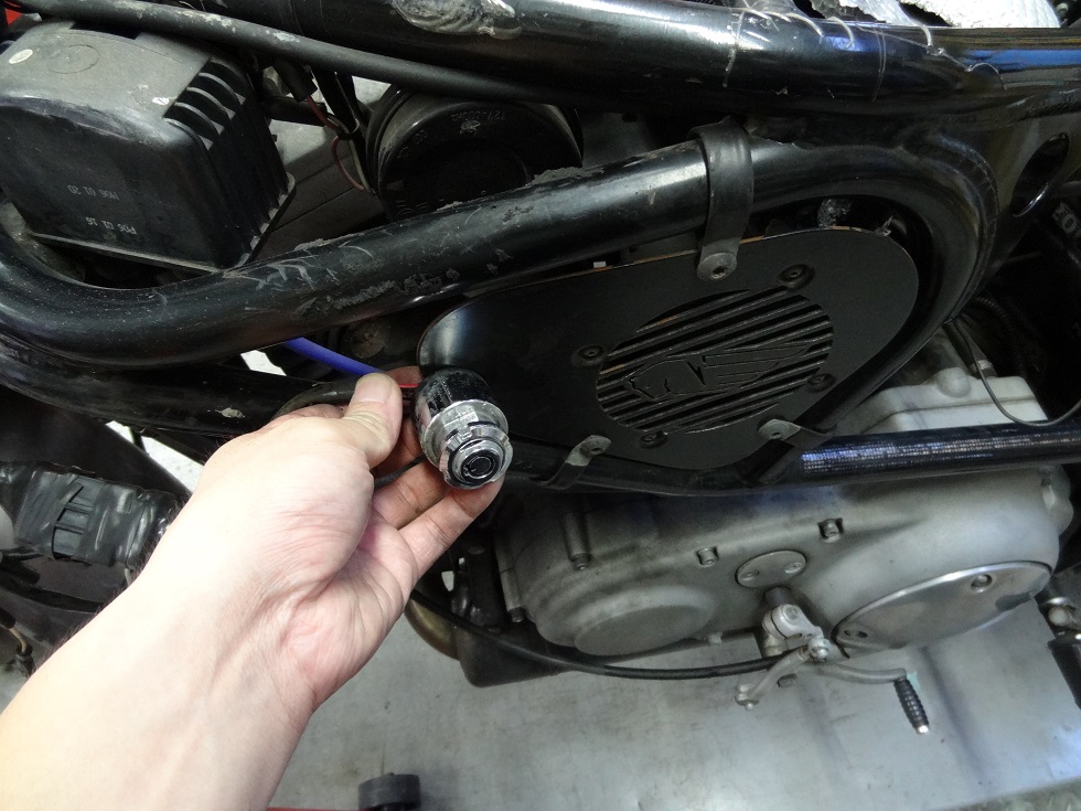 今回、メーターブラケットも外したので、そこに付いているイグニッションスイッチも移動せねばなりません・・・・と移動先を探していると丁度良さそうな場所を発見!