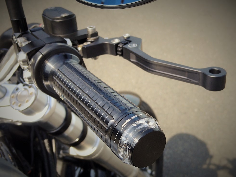 バーエンドウインカー『m-Blaze Disc』とアルミビレットグリップ『m-Grip』。