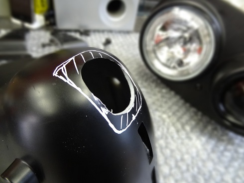 車体と干渉してそのままでは取り付けできませんので、干渉部分をカットしていきます。