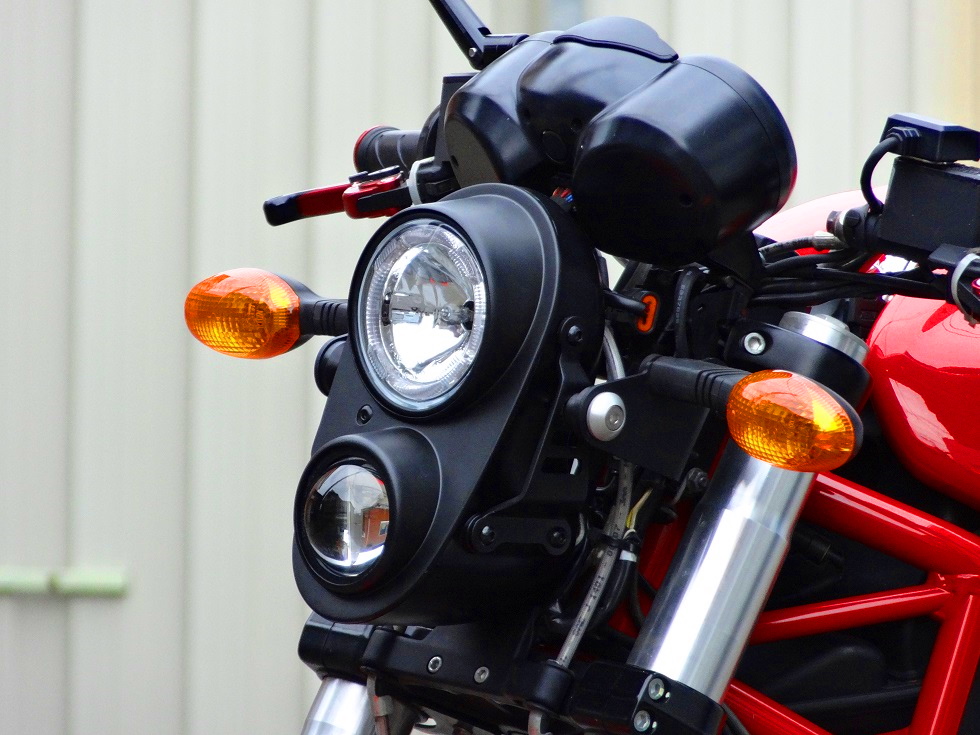 ドゥカティ モンスター400 ストリートファイターカスタム ヘッドライト取り付け