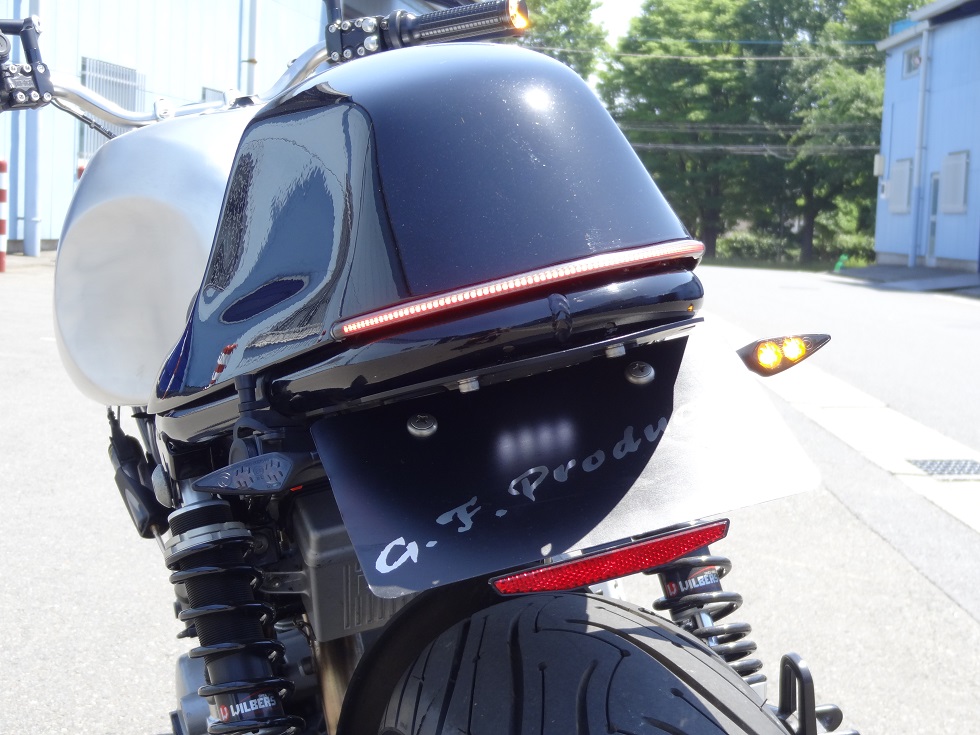 ワンオフのナンバープレートブラケットも拘りのひとつで、角度、クリアランス、強度と考えられた設計です!
