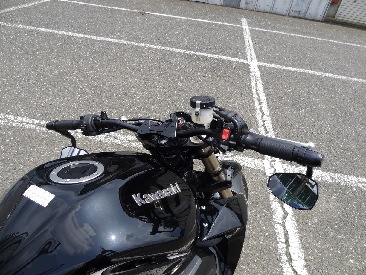 Z1000のノーマルハンドルクランプの形状がフラットではないおかげで、完全に埋め込まれた状態ではなく、露出している箇所もあったりで立体感が出て凄くかっこよく付きました!!