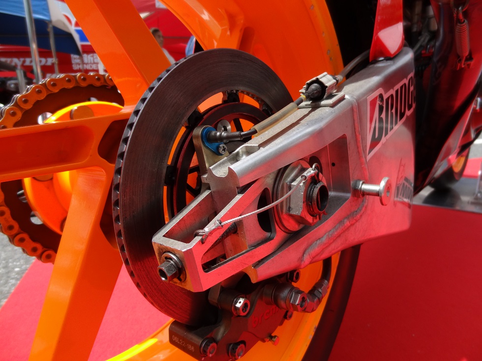 昔、100均ショップのお皿のように無造作に積み重なっている、黒くてカッコいいブレーキローターを『これ軽いっすね~』なんてポンポン投げて遊んでしたら、『それ1枚100万円だから!(ホントか冗談かは分りません)』なんて言われて凍りついたと同時に落としそうになるとゆう恐怖体験をしたこともありますが(笑)まぁ、まだまだカーボンが高価な時代の話なので、今だったら『1枚50万円だから』位にはなっているのかな?それでも凍りつくと思いますが・・・と言うより、今はカーボンローターの存在を知っているので、勝手に触ったりはしないはず!(笑)