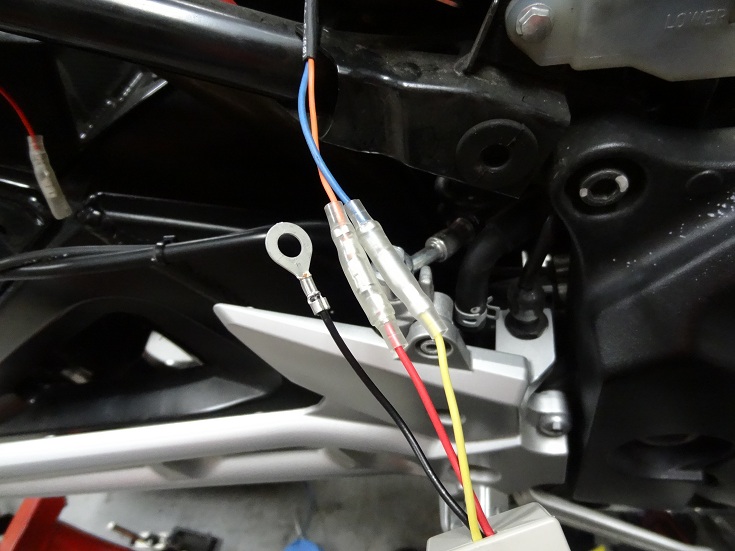 キジマの説明書に従い接続します。残りの黒い配線はボディーアースでOKです。(ノーマル車両が3ピンのウインカーリレーの場合は各々接続すればOKです)