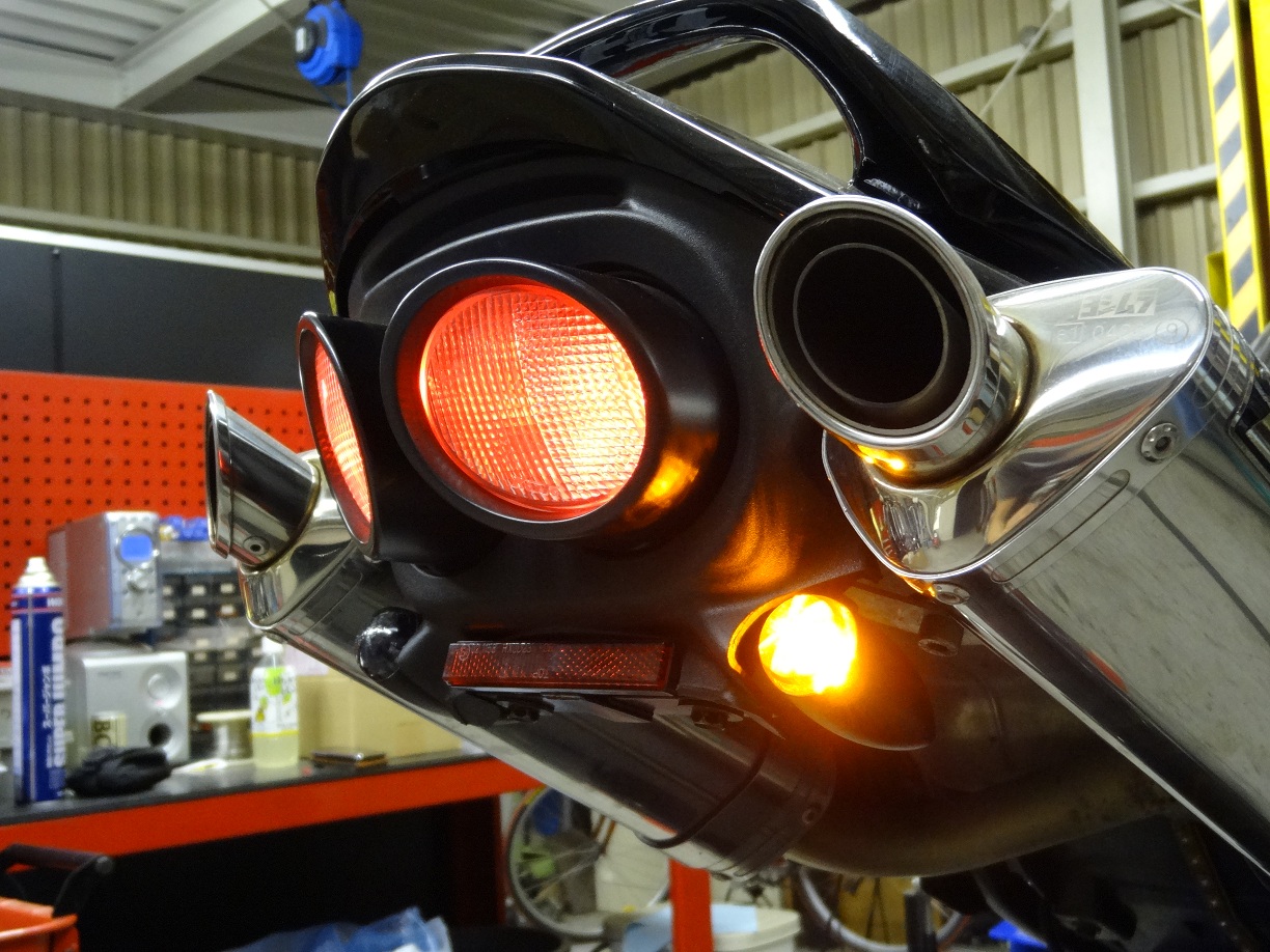 後は作ったウインカーブラケットにLEDウインカー、リフレクターを取り付けて・・・・・・