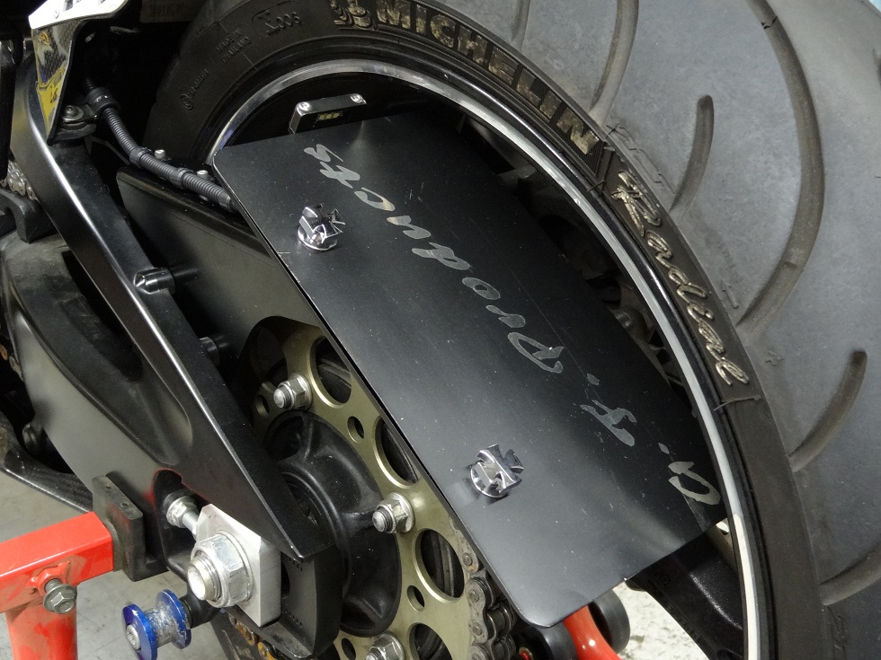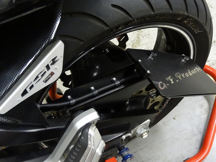 ホイール脱着の度に広告バックプレートを外す必要がありますので、少しでも手間を軽減するのと、面圧にする事により、チェーンガードへの負担を軽減する目的があります!!