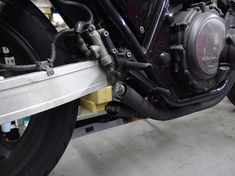 通常このようなマフラーの出口は切りっぱなしが多いのですが、きちんと反し処理がされており、出口部分も美しいですね!!!