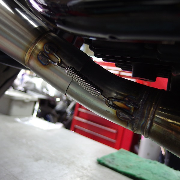 ちなみにこのスプリングがないと、走行中だんだんサイレンサーが後方にずれて抜けちゃったりしますので、連結する時はスプリングを使うか、マフラーバンドで固定しましょう!