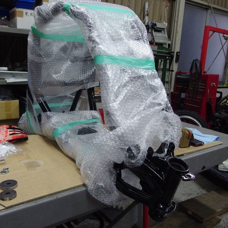 各パーツやヘッドライトの位置決めも終わりましたので、フレームをペイントに出します!