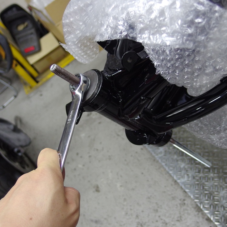 トップブリッジもパウダーコートして黒くなっているので、併せてポッシュ製のブラックアルマイトのステムボルトに変更します!