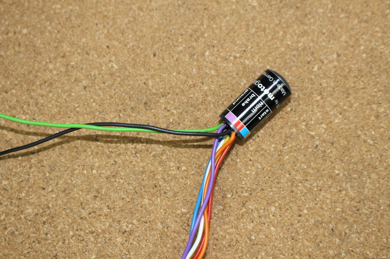 紫線はフロントブレーキスイッチに接続するのですが、今回は車体のノーマルの配線を使いmユニットと連結しますので、チョッキンします。