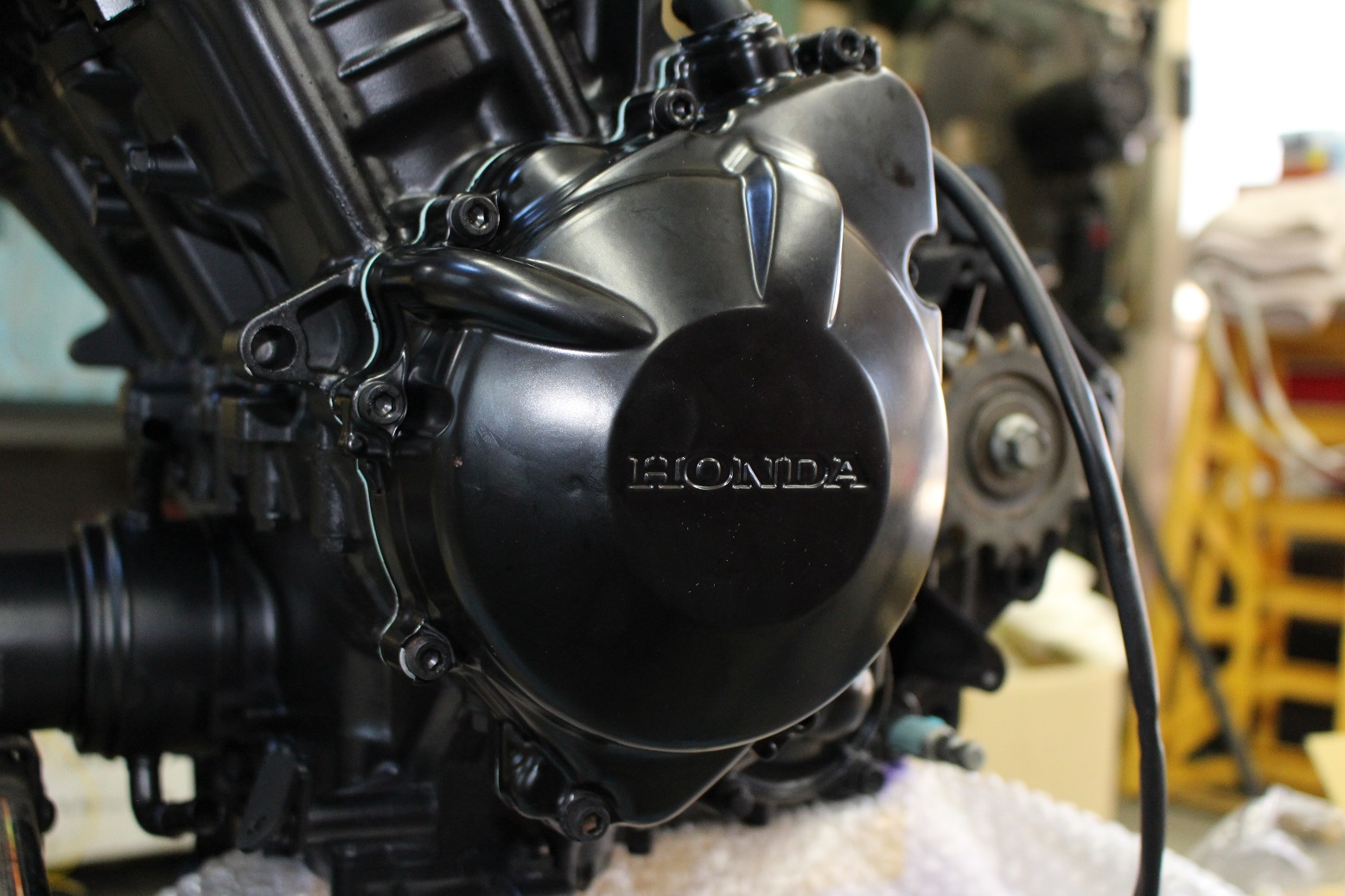 エンジンは熱や薬品に超強いガンコート、エンジンカバー類は熱や薬品に強いパウダーコート、ついでにエンジンカバー類は黒いステンレスボルトを使用しました!